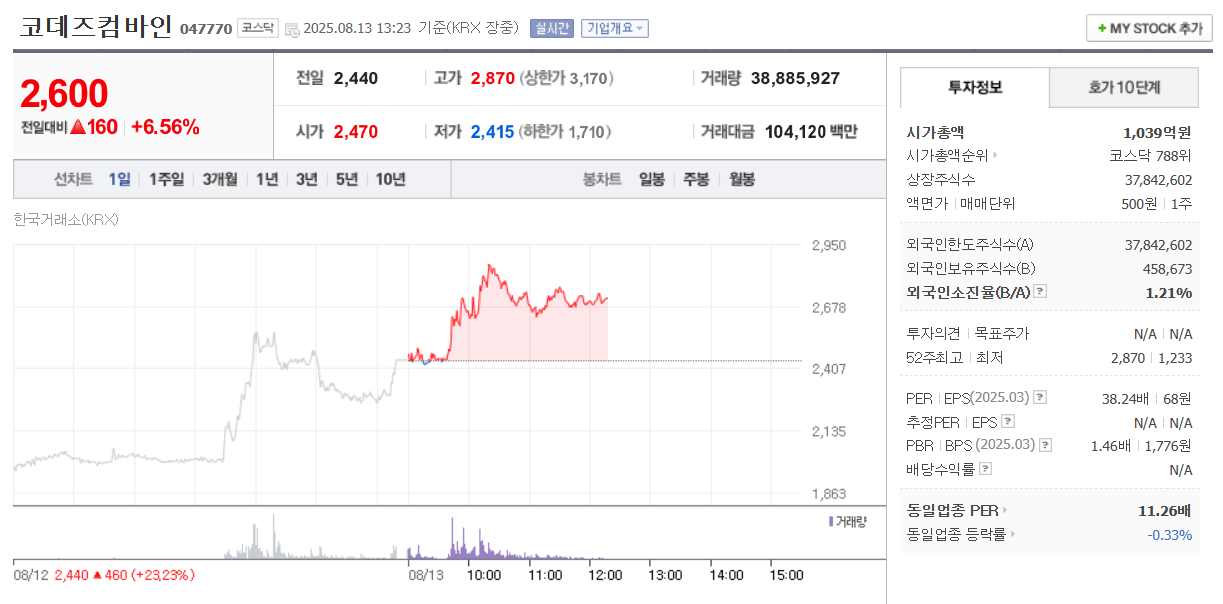 - 어제(2025-08-12) 종가: 2,440원 (전일 대비 +23.23%)